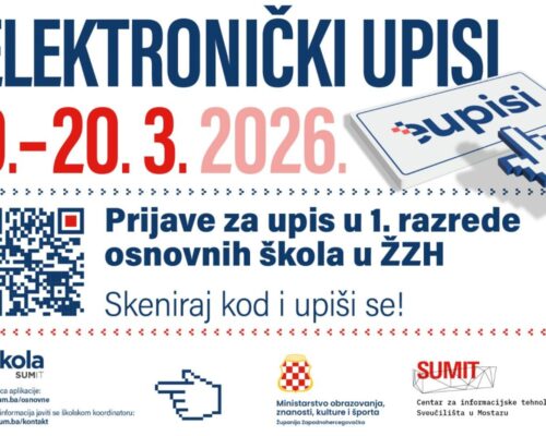 Elektroničke prijave za upise u prve razrede osnovnih škola u Županiji Zapadnohercegovačkoj održat će se od 9. ožujka do 20. ožujka 2026. godine. Prijave za [ ... ]