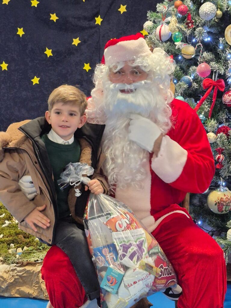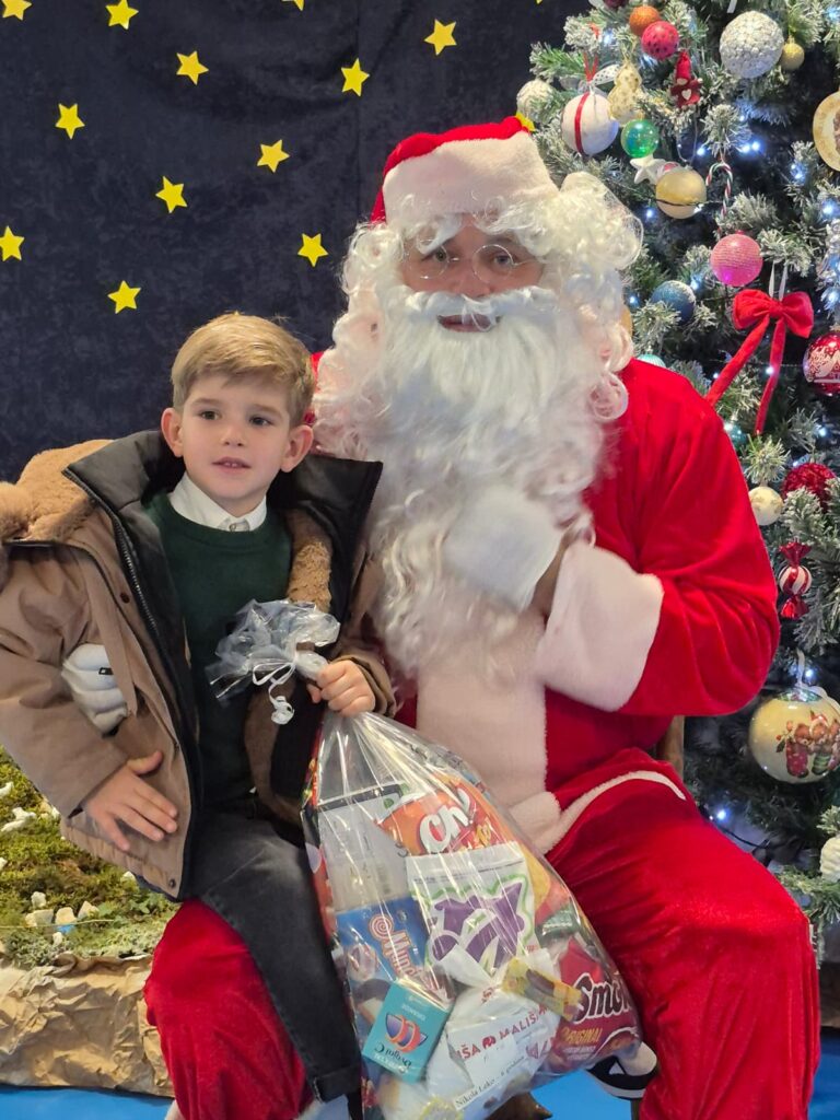 Dan 16.12.2025. ostaje u lijepom sjećanju svih nas – djelatnika, učenika i njihovih obitelji. U toploj atmosferi škole, ispunjenoj svjetlom i veseljem, Djed božićnjak je osobno obišao sve najmlađe, dijeleći osmijehe i paketiće punjene slatkišima i igračkama. Djeca su s oduševljenjem primila poklone, a cijela škola odjekivala je smijehom i božićnim pjesmama.
